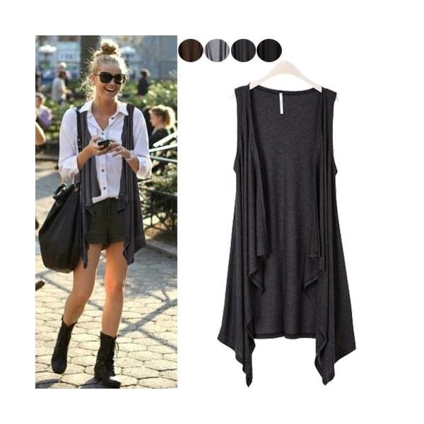 Amazon Gergeousロングベスト レディース ゆったり 薄手 チョッキ 無地 アウター ノースリーブ 春服 夏 冷房対策 黒ベスト ビジネス 通勤 ベスト 通販